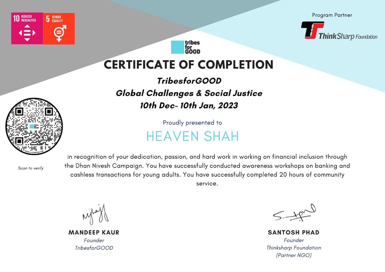 Working with Think Sharp Foundation to teach financial literacy to government school students in Maharashtra was an amazing experience. We taught kids about managing their money, the importance of saving, and how to open a bank account. It was inspiring to see their enthusiasm and eagerness to learn. We used simple examples to explain concepts, and the students quickly understood them. Watching them appreciate the value of financial knowledge was incredibly rewarding. This experience made me realize how important it is to give young minds these skills to help them build a better future. The students asked lots of questions, showing their curiosity and desire to improve their lives. We also had fun activities where they could share their thoughts and ideas, making the learning process more engaging. Overall, it was a fulfilling journey that showed me the power of education and the potential of these bright young minds.